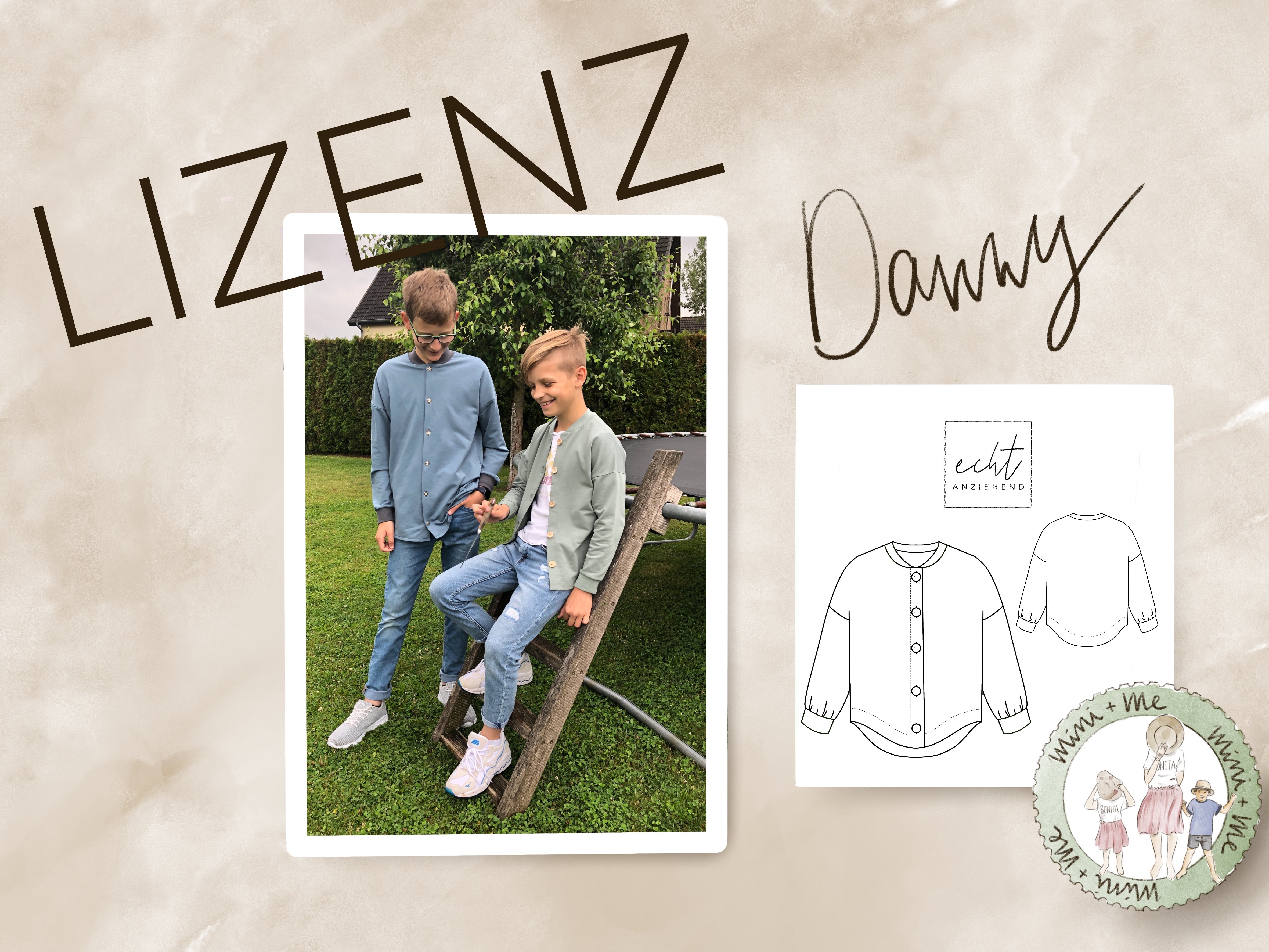 Die erworbene Gewerbelizenz für das Schnittmuster Danny Mini-Me (Kinder-und Erwachsenengröße) von echt-anziehend ist zeitlich unbegrenzt und gilt für die Produktion von bis zu 500 Stück pro Jahr.