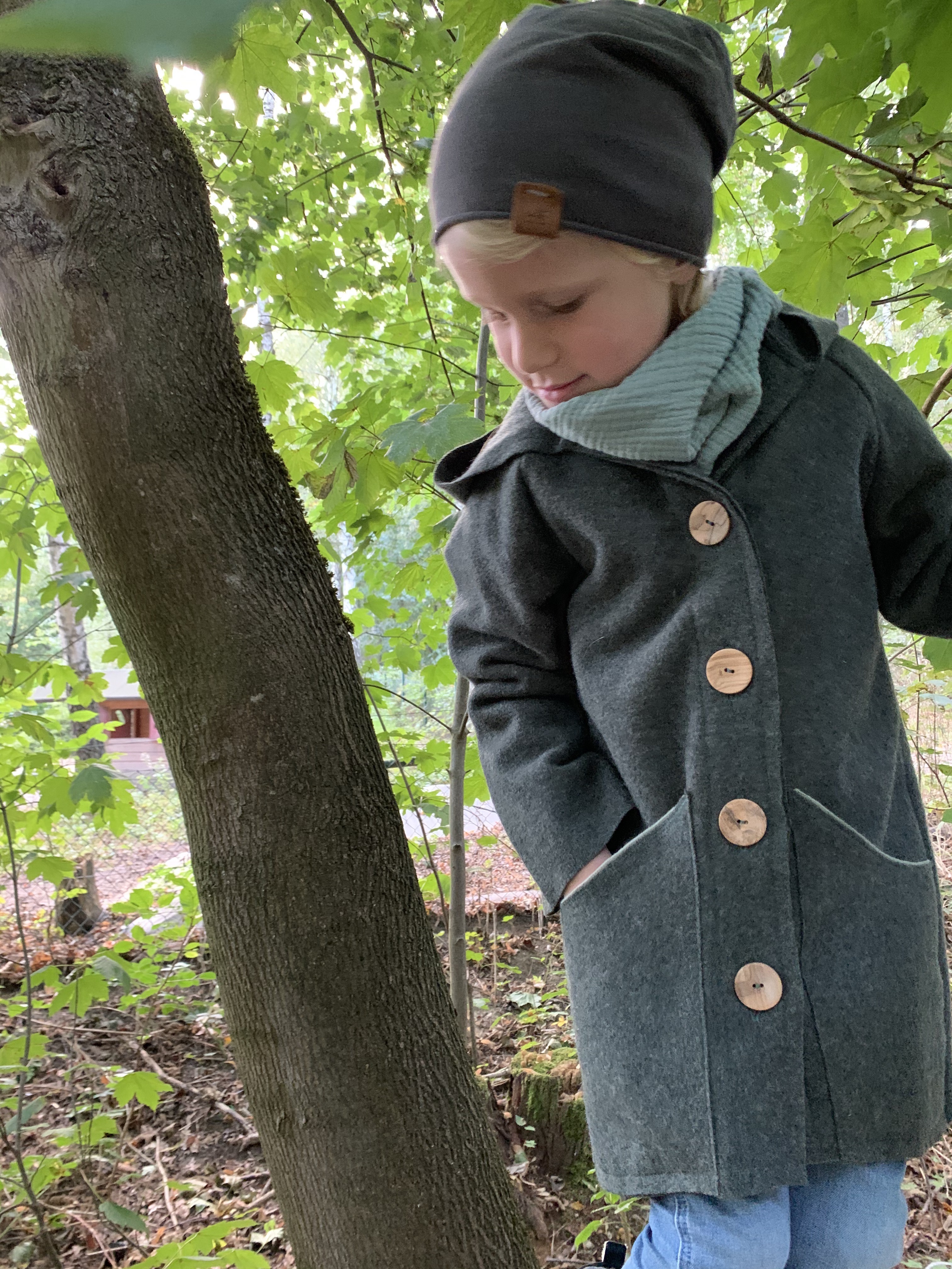 "Mama hat meine neue Jacke auch Taschen?" Dies ist die erste Frage, die meine Tochter stellt, wenn es zum Winter kommt und ich ihr eine Jacke nähe. Die Handschuhe werden im Herbst/Winter doch oft vergessen und da sind Taschen einfach von Nöten. Unsere Jacke hat große Taschen, ist schnell genäht, die Enden sind offen gearbeitet und sie ist ungefüttert, wie wir das auch von führenden Walkjacken auf dem Markt kennen. Also ran an die Maschinen.