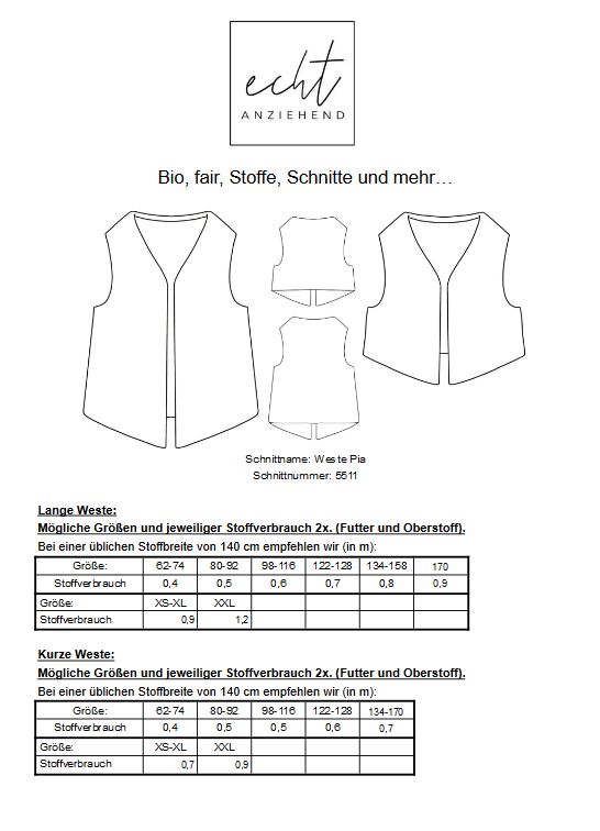 Schnittname: Weste Pia kurz und lang
