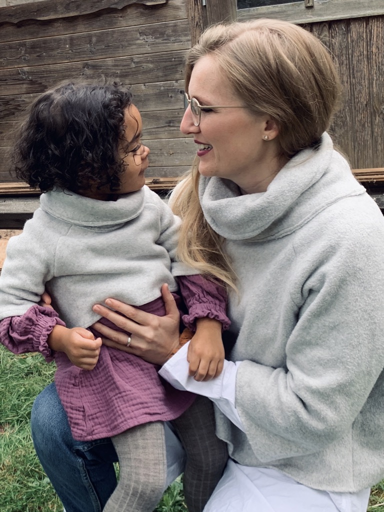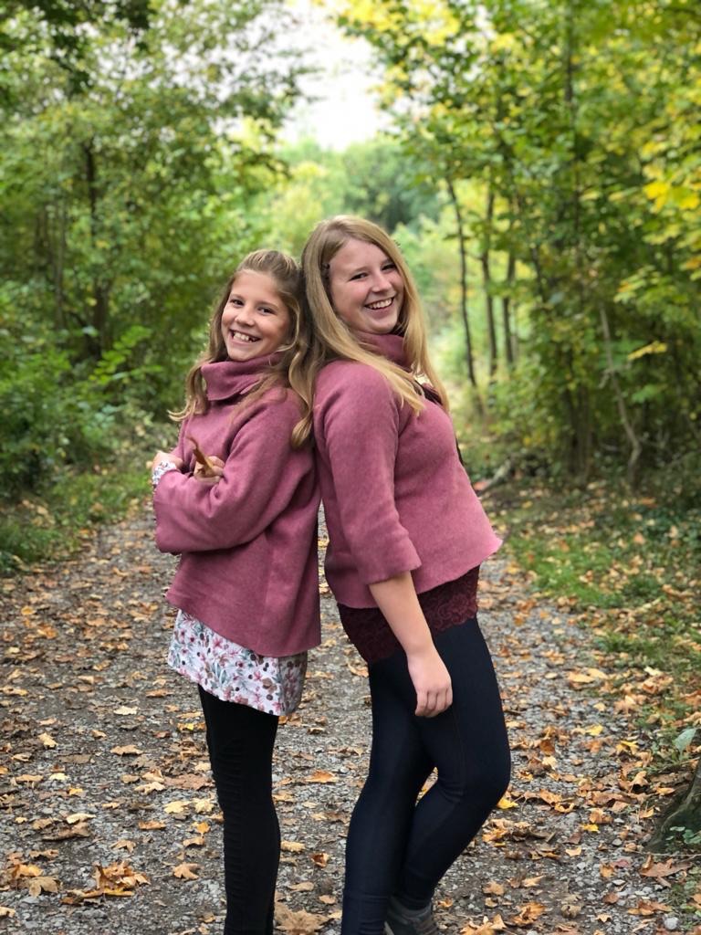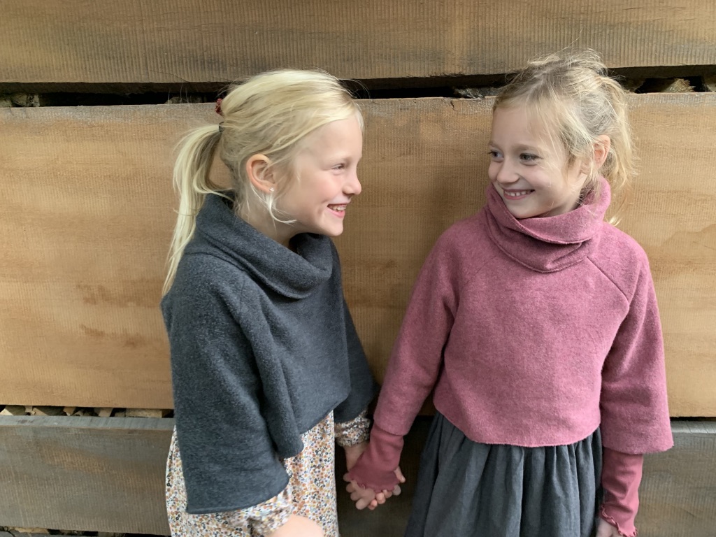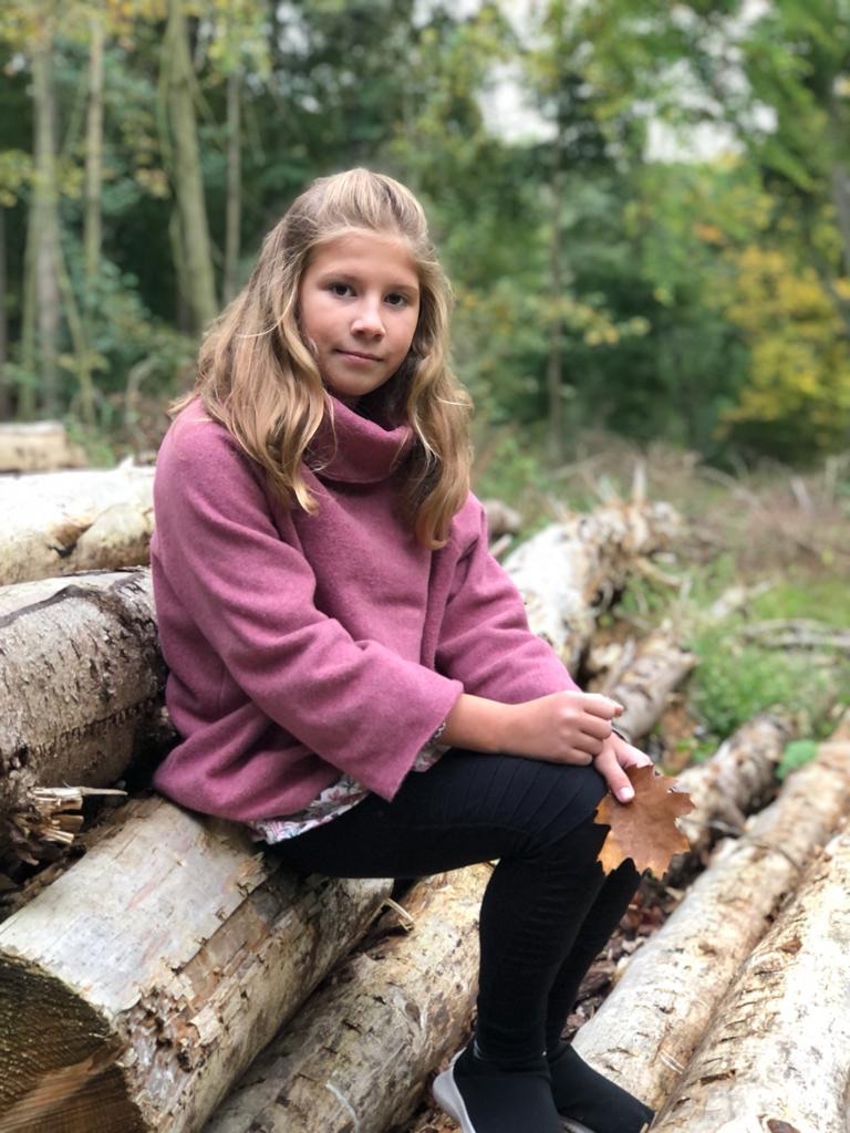 Ein Pullover mit offenen Kanten, doppelten Kragen und ein wenig kürzer geschnitten. Einfach wunderbar über Kleider, Blusen und perfekt für High Waist Hosen.