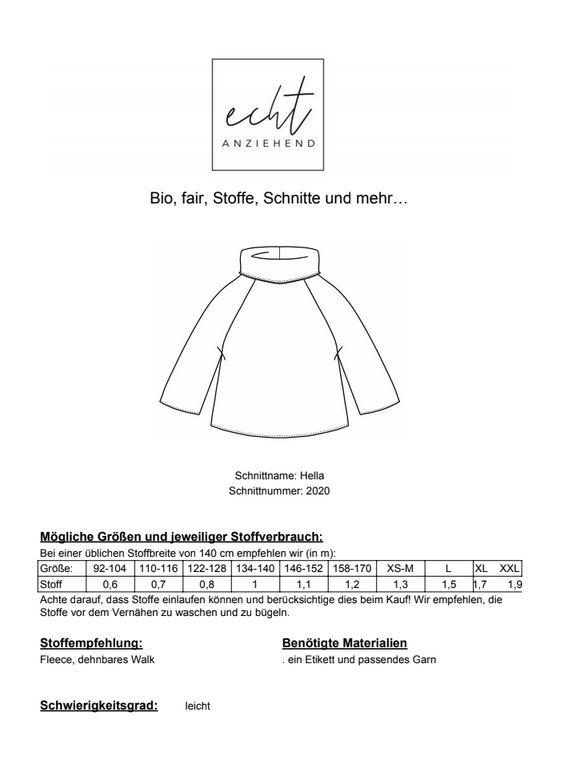 Dieses Schnittmuster ist als PFD hinterlegt. Nach Zahlungseingang erhältst du die PDF zum Herunterladen auf deine E-Mail Adresse zum Ausdrucken.