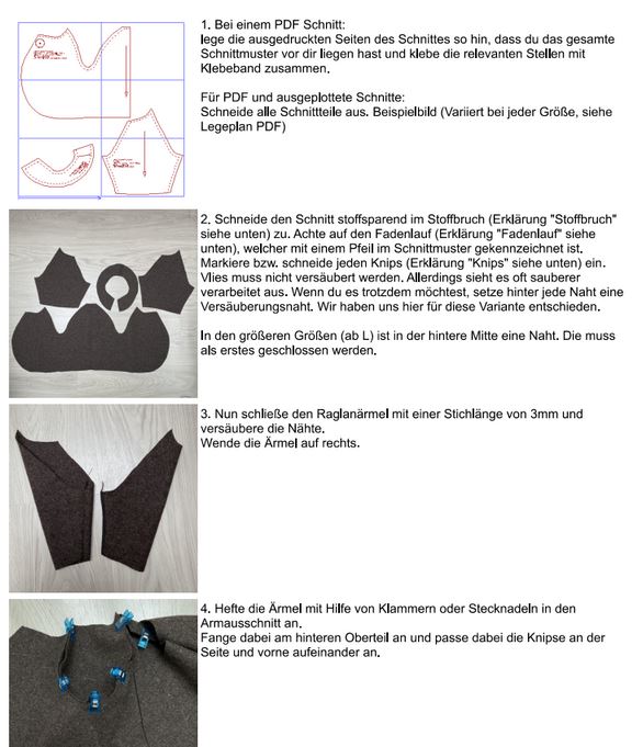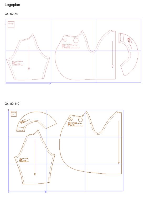 Dieser Schnitt ist nur in der ausgesuchten Größe zum Zusammenkleben hinterlegt und du bekommst eine Anleitung und ein Legeplan für das Zusammenkleben des Schnittmusters dazu.