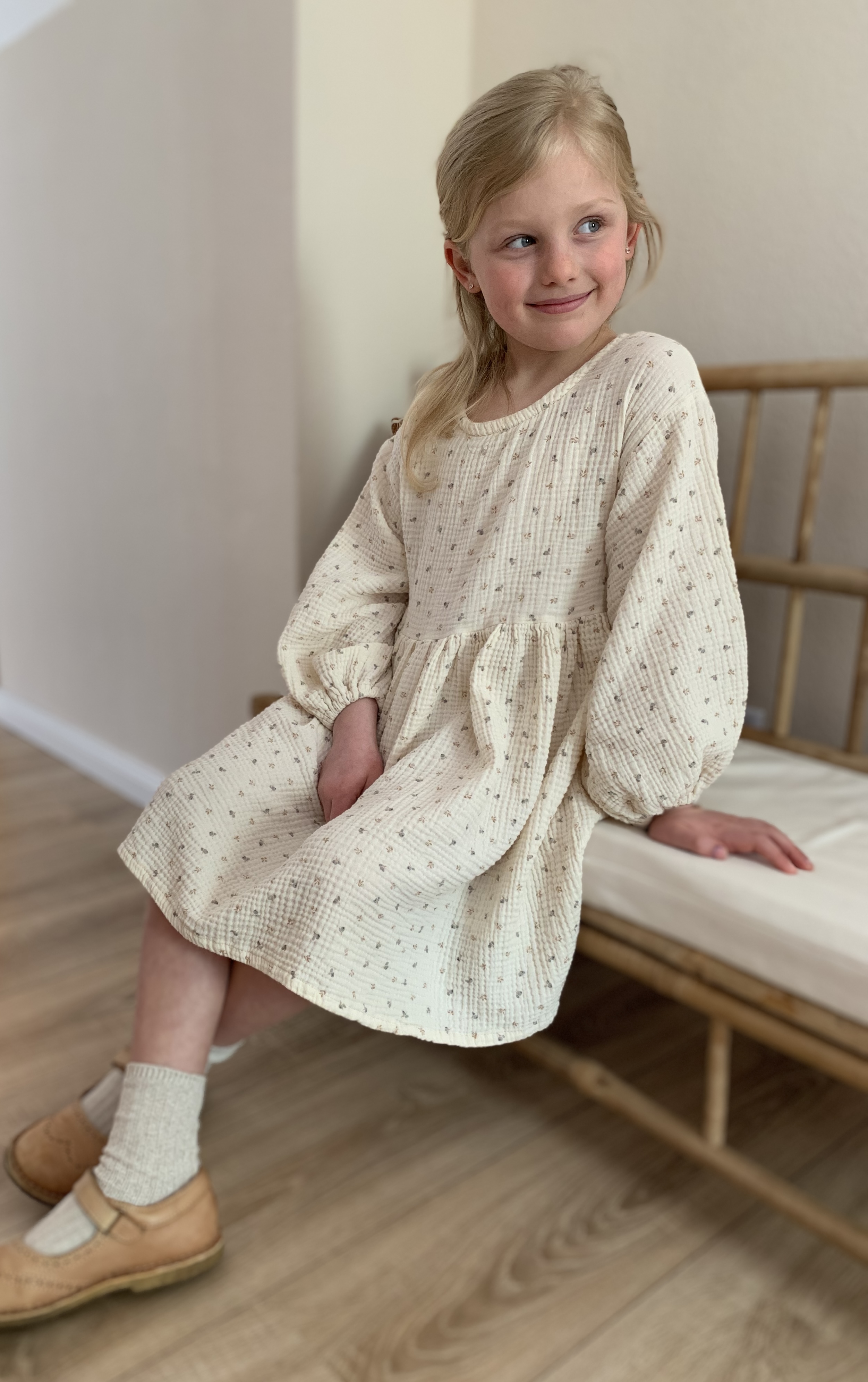 Diese Kleid besticht durch seine Puffärmel. Aber nicht nur, du kannst es für den Sommer auch mit einem kurzen Klappärmel nähen.