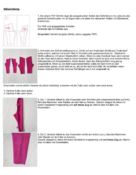 Dieser Schnitt ist nur in der ausgesuchten Größe zum Zusammenkleben hinterlegt und du bekommst eine Anleitung und ein Legeplan für das Zusammenkleben des Schnittmusters dazu.