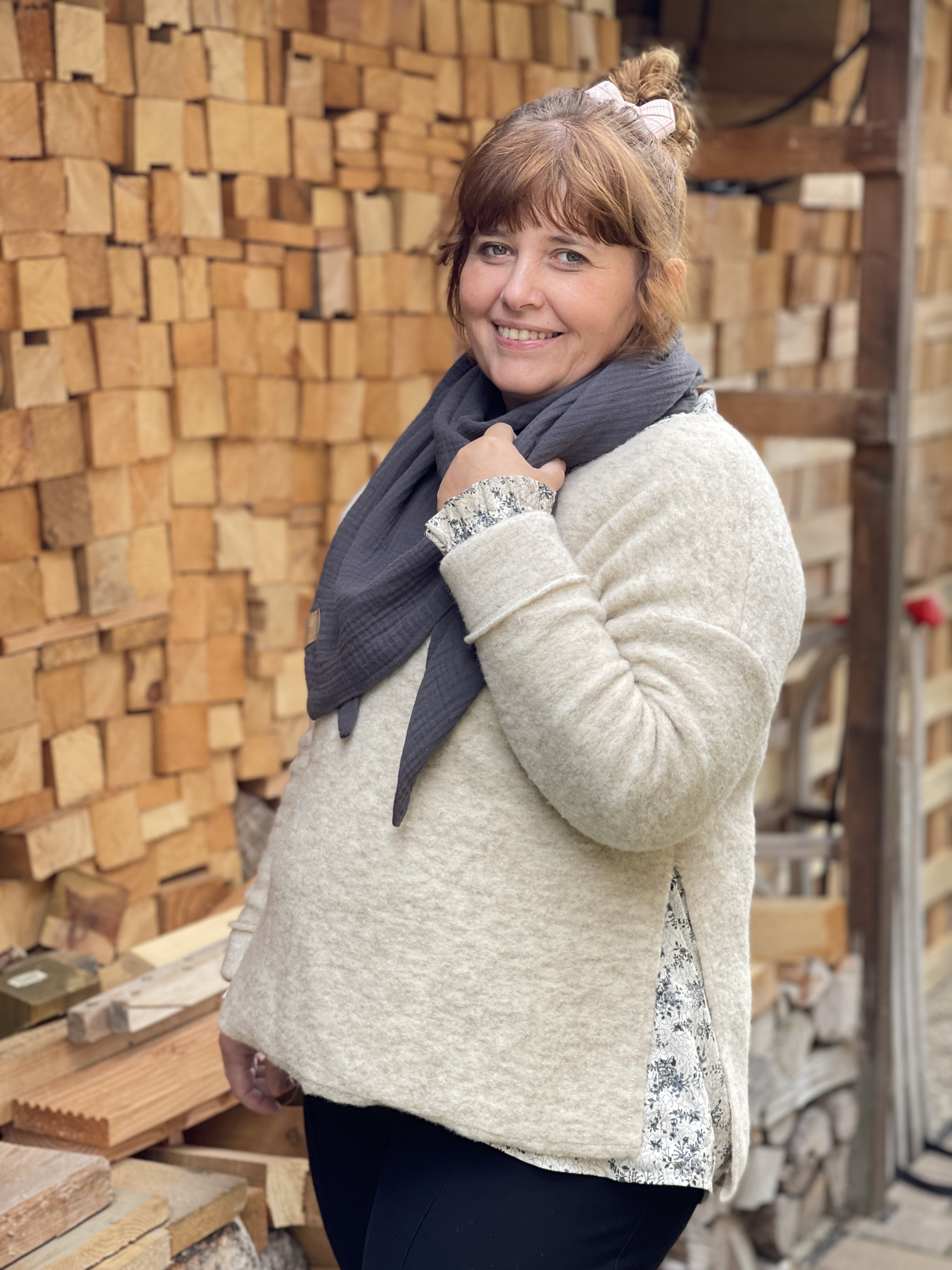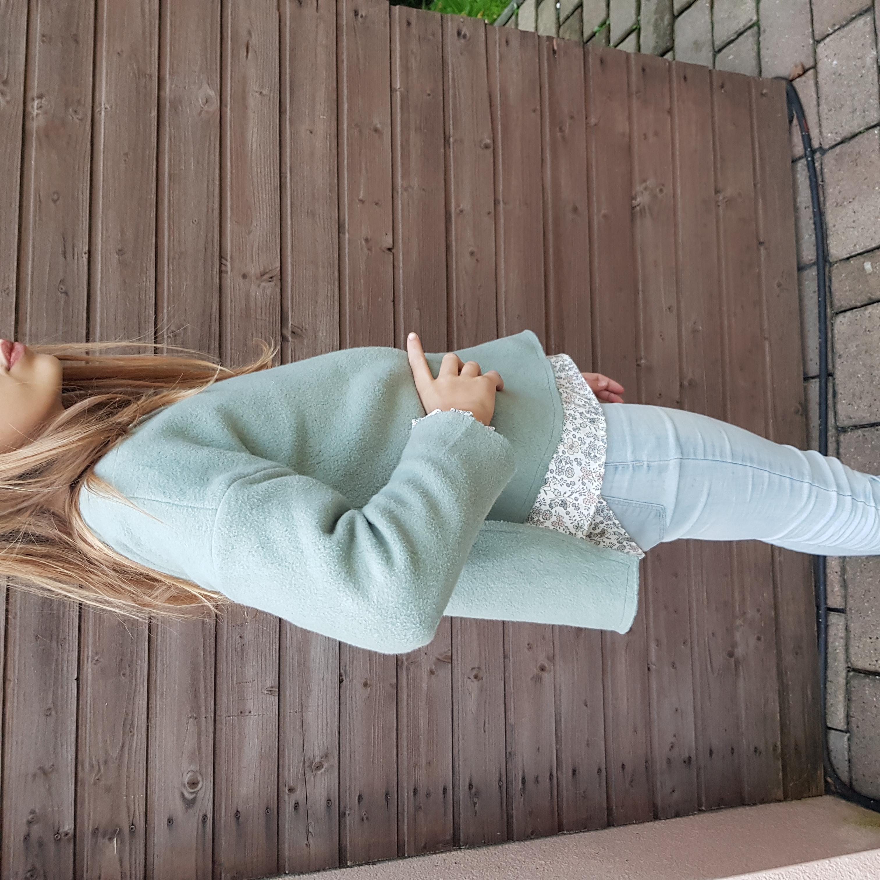 Ein Pullover für Strickwalk oder Bio Fleece. Wieder einmal ein Schnitt wie ihr ihn von uns kennt. Ein Schnitt der schnell genäht ist, mit offenen Kanten gearbeitet und dann natürlich auch noch wunderschön ist. Dieser Pullover verdeckt die Bluse unten drunter nicht im Ganzem, sondern setzt sie noch mal anders in Szene durch die großen Schlitze an der Seite. Der Pullover wurde für unseren Strickwalk konzipiert, ist aber auch aus Bio Fleece ein echter Hingucker. Hier gilt zu beachten: Bio Fleece ist elastischer/dehnbarer als Strickwalk, wodurch der Pullover lockerer sitzen wird. Bei diesen Schnitt finden wir macht das nichts. Evtl. musst du die Ärmel etwas enger nähen im Bio Fleece, dies ist aber Geschmacksache und dir selbst überlassen.