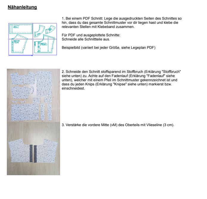 Dieser Schnitt ist nur in der ausgesuchten Größe zum Zusammenkleben hinterlegt und du bekommst eine Anleitung und ein Legeplan für das Zusammenkleben des Schnittmusters dazu.