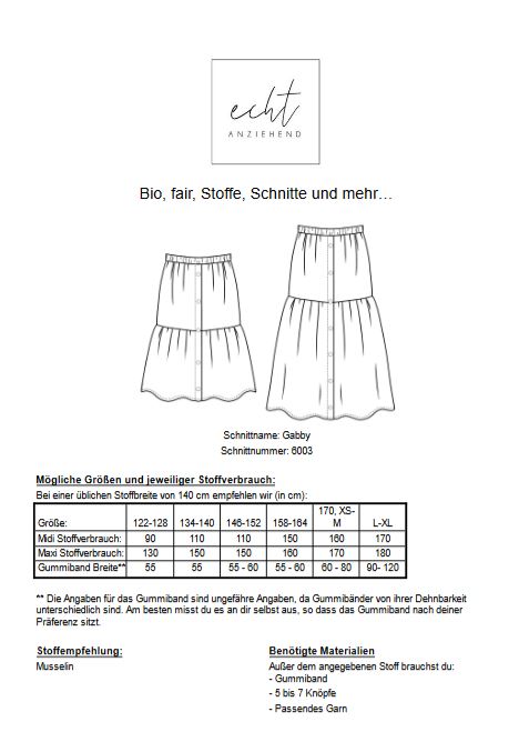 Die Gabby ist ein herrlicher Musselinrock mit einer schönen Knopfleiste. Du kannst ihn in maxi oder midi nähen. Je nachdem welche Länge du bevorzugst.